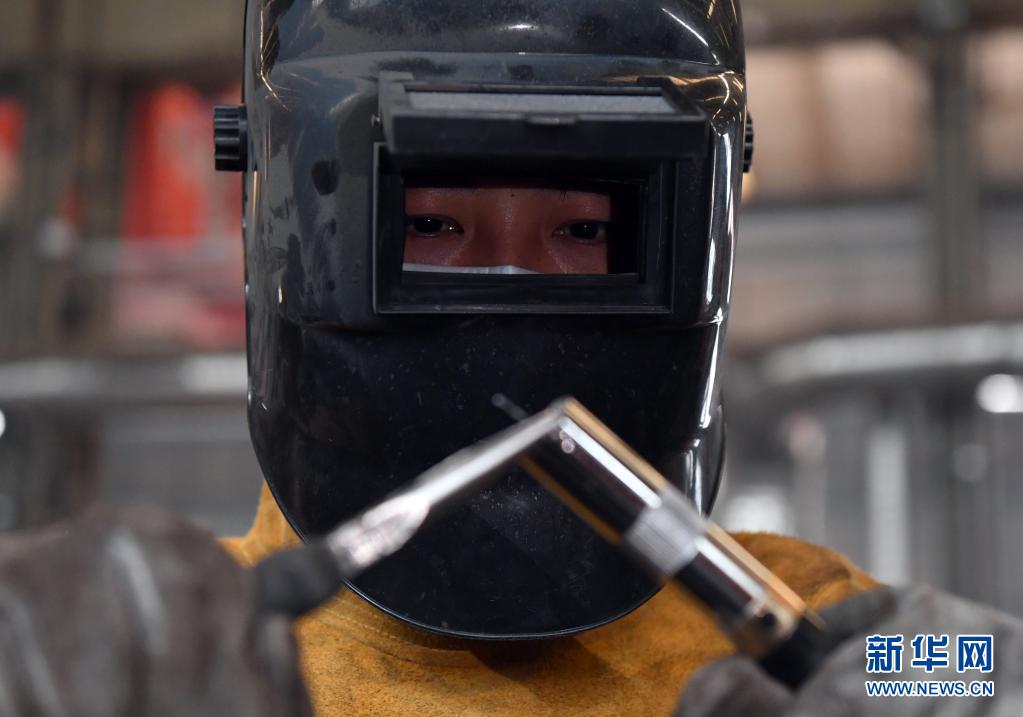王安永在中鐵工程裝備集團車間整理焊條,準備焊接作業(yè)(4月23日攝)。