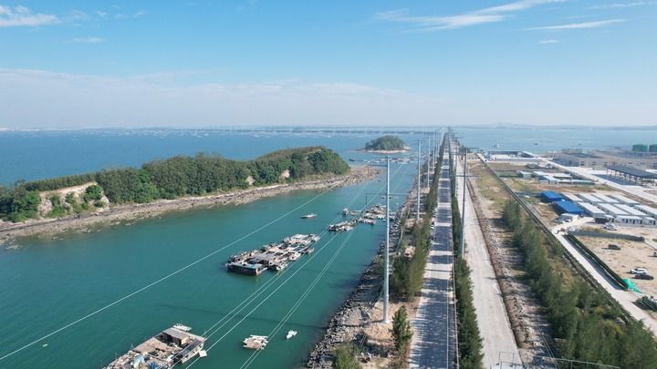 榄坪至通海220千伏线路工程投运,为钦州沿边临港产业高质量发展注入强劲动能。(苏楷文 摄)