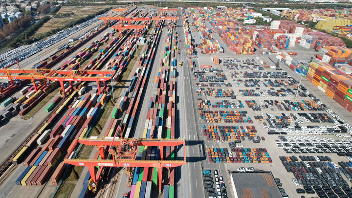 12月4日无人机拍摄的上海铁路芦潮港集装箱中心站。