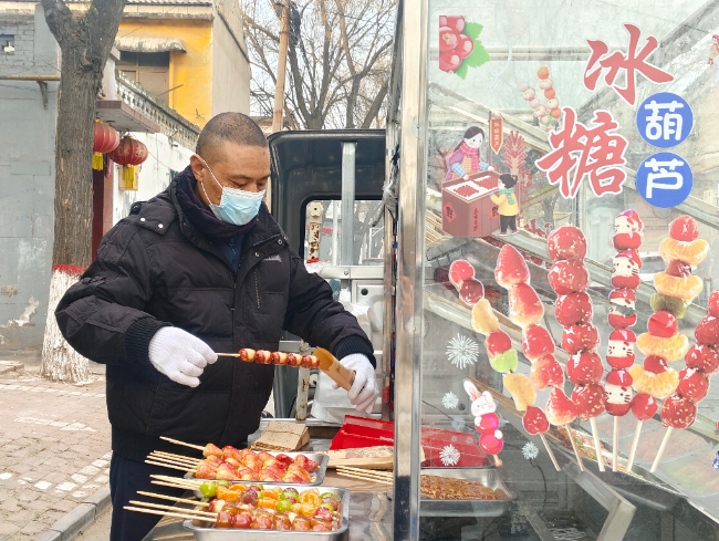 强哥在透析结束后开始营业糖葫芦摊(受访者供图)