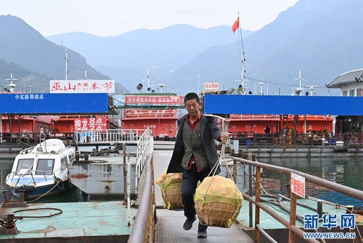 三峡工程蓄水后,库区形成冬暖、少雾、长日照的独特峡江气候,格外适宜脐橙生长,脐橙也成为沿岸不少地方的一张名片。船一靠稳,两位安全员便麻利地跳下船,帮村民将一筐筐刚刚采摘的脐橙搬上甲板。这样一次次停靠、载货、起航,小红船沿着长江两岸交替往返,在江面划出一道道悠缓的“之”字。