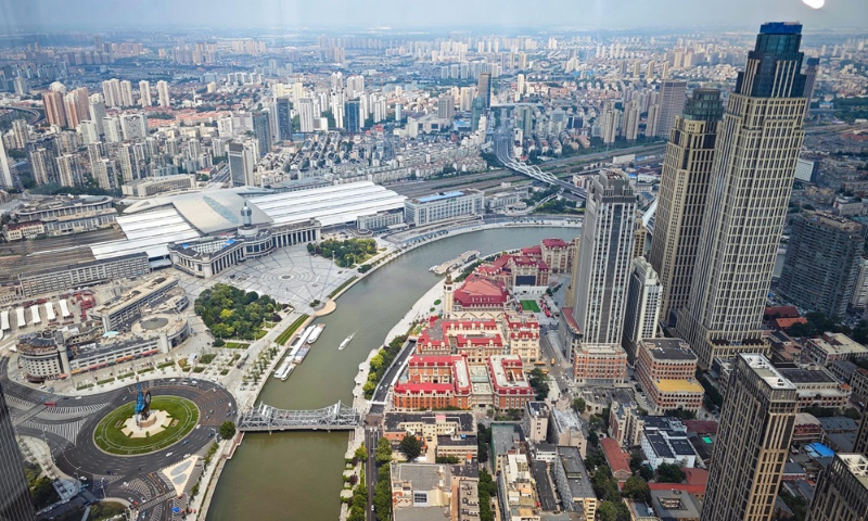 从“天津之心”俯瞰城市(天津环球金融中心供图)
