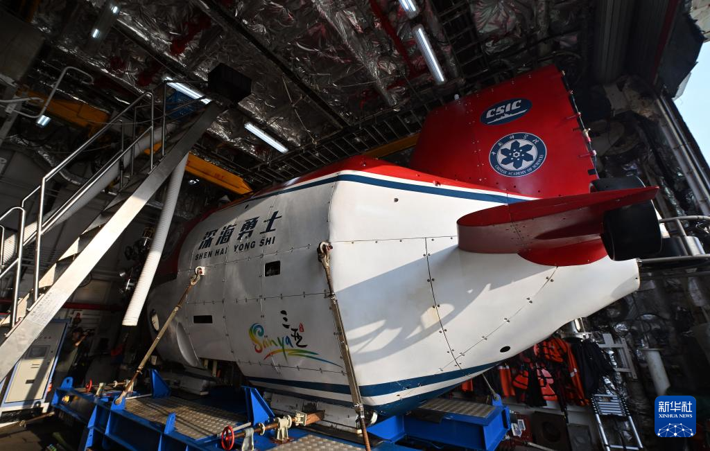 这是完成南海西北陆坡一号沉船第一次考古调查的“深海勇士”号载人潜水器(5月21日摄)。