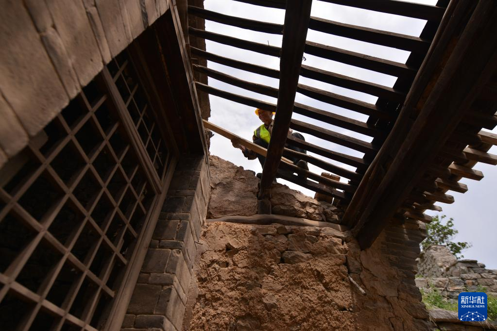 6月7日,施工人员在河北省石家庄市井陉县小梁江村进行古建筑修缮。