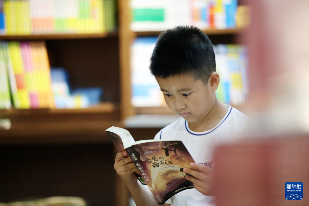 8月1日,一名学生在山东省临沂市郯城县新华书店阅读。