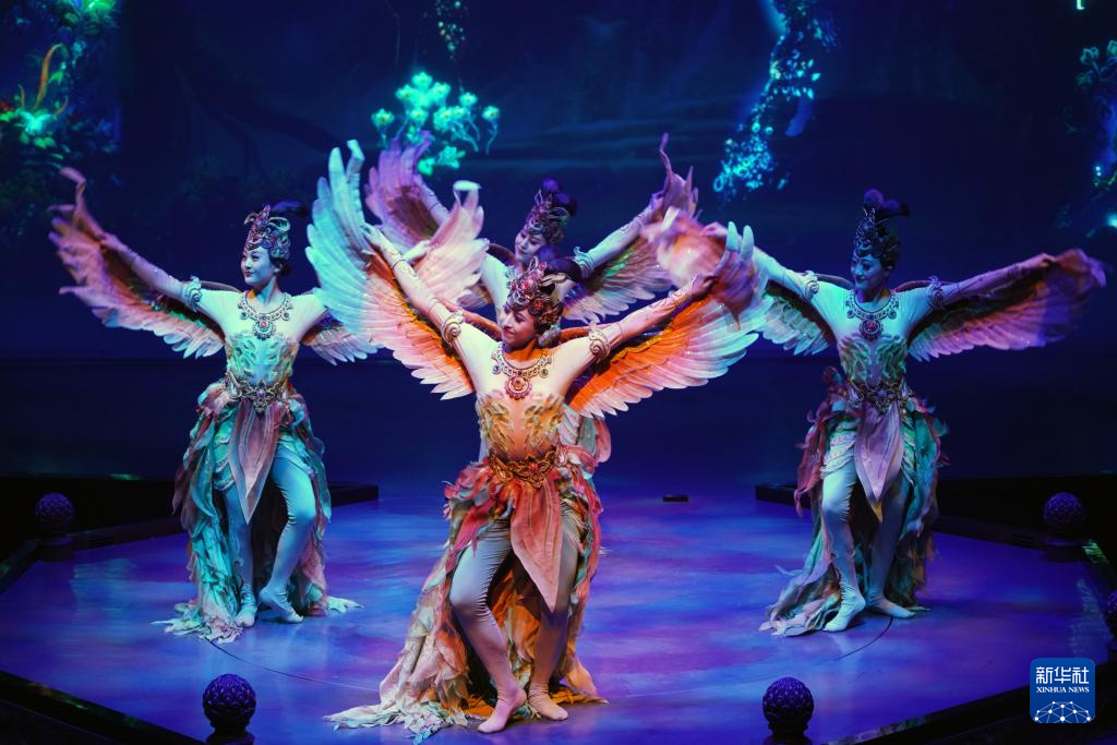 今年以来,脱胎于敦煌文化的洞窟沉浸式体验剧《乐动敦煌》、室内情景体验剧《又见敦煌》、沙漠实景演出《敦煌盛典》和中国残疾人艺术团情景音画剧《千手千眼》四场剧目在丝路名城甘肃敦煌同步上演,剧目将敦煌历史底蕴、服饰文化、乐舞文化等生动融合,为游客呈现出精彩绝伦的敦煌文化视觉盛宴,深受中外游客喜爱。截至8月10日,四大剧目今年已累计演出1175场次,观看游客突破66万人次。其中,《乐动敦煌》演出借助洞窟式实景移动舞台和全息投影等技术,还原了敦煌壁画中的乐舞盛景,讲述了西域少年白歆苦苦追寻并最终在敦煌乐舞壁画中领略到音乐真谛的故事,观众在可游走、互动的沉浸式洞窟剧场内,零距离感受敦煌艺术中诗、舞、音、画的璀璨繁盛。