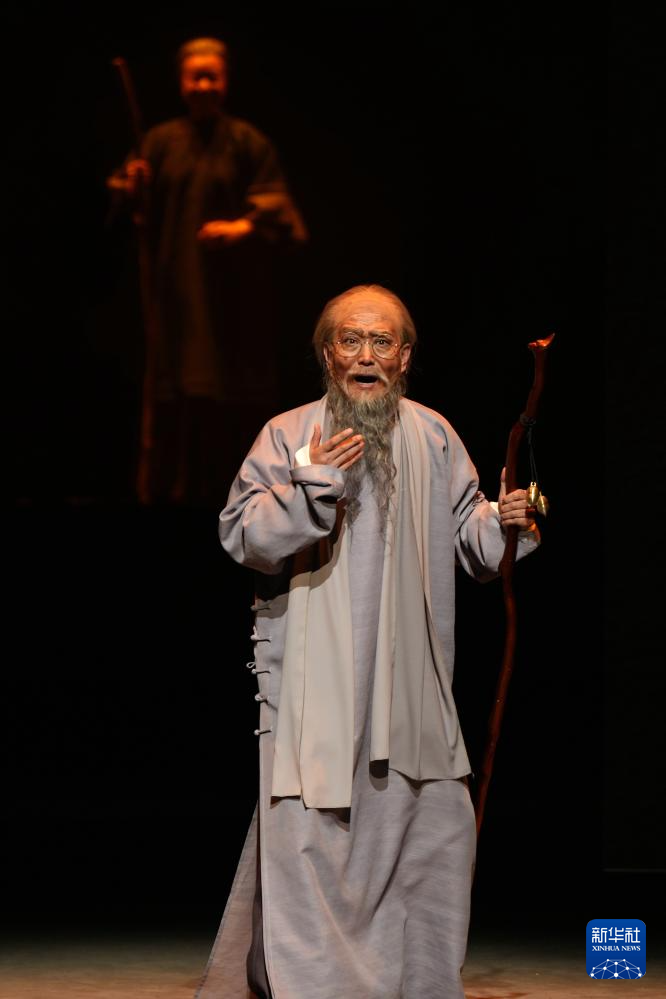 演员在北京长安大戏院表演新编京剧《齐白石》(12月16日摄)。