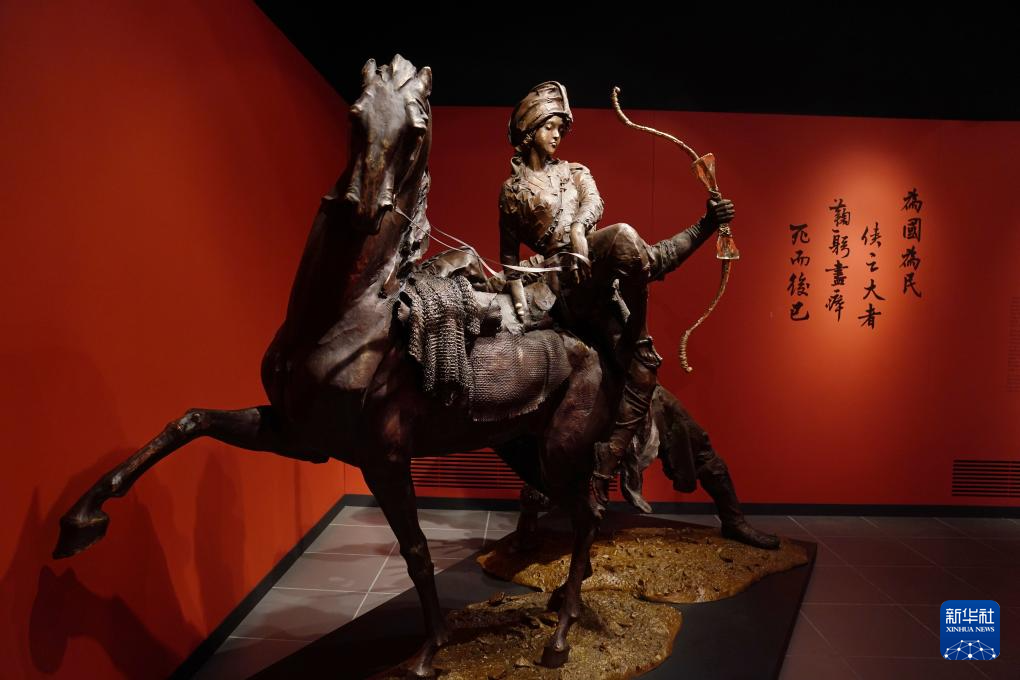 这是3月12日在香港文化博物馆拍摄的由雕塑家任哲创作的金庸武侠人物雕塑。新华社记者 王申 摄