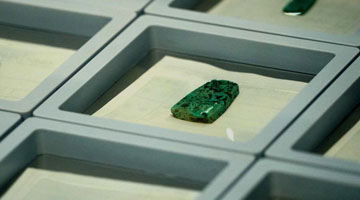 这是王庄遗址出土的玉项饰(1月30日摄)。