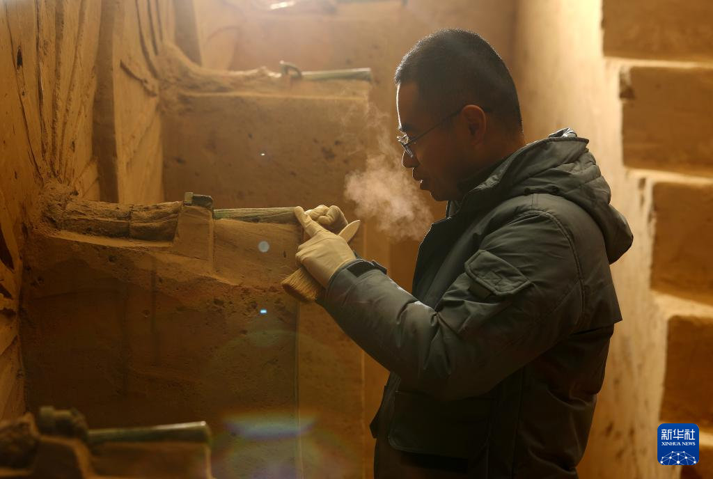 陕西清涧寨沟遗址瓦窑沟墓地出土的葬车(资料照片)。