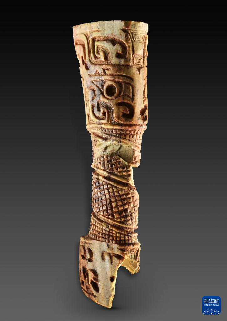 陕西清涧寨沟遗址瓦窑沟墓地出土的雕花象牙柄(资料照片)。