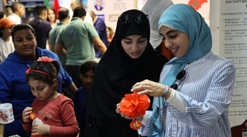 5月15日,人们在贵州省黔东南苗族侗族自治州黄平县飞云崖景区体验“四月八”长桌宴。