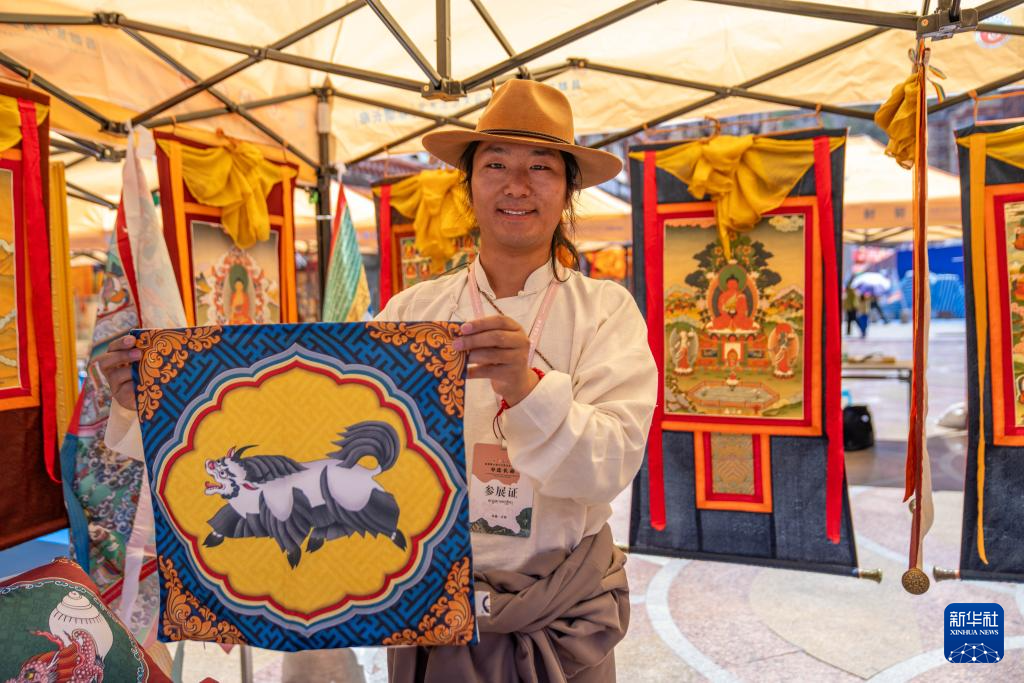 县级非物质文化遗产传承人索朗扎西在展示他的创意作品(8月20日摄)。