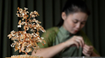 9月18日,工作人员安装调试灯光装饰艺术作品。