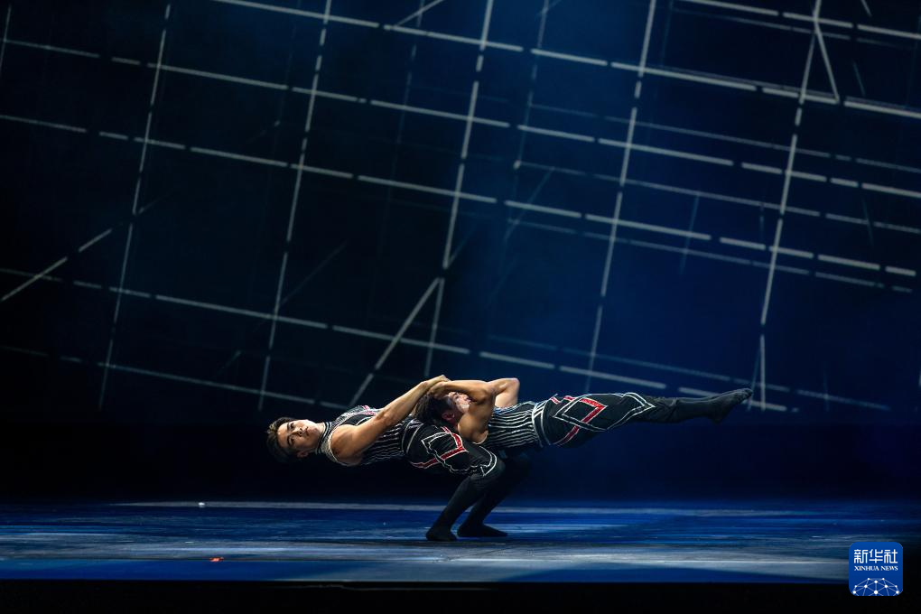11月22日,在希腊雅典举行的第二届中希国际戏剧节上,广州杂技团演员表演杂技《男子对手-力量》。