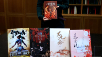 11月24日,人们在萧县“十月古会”书画展览上参观。