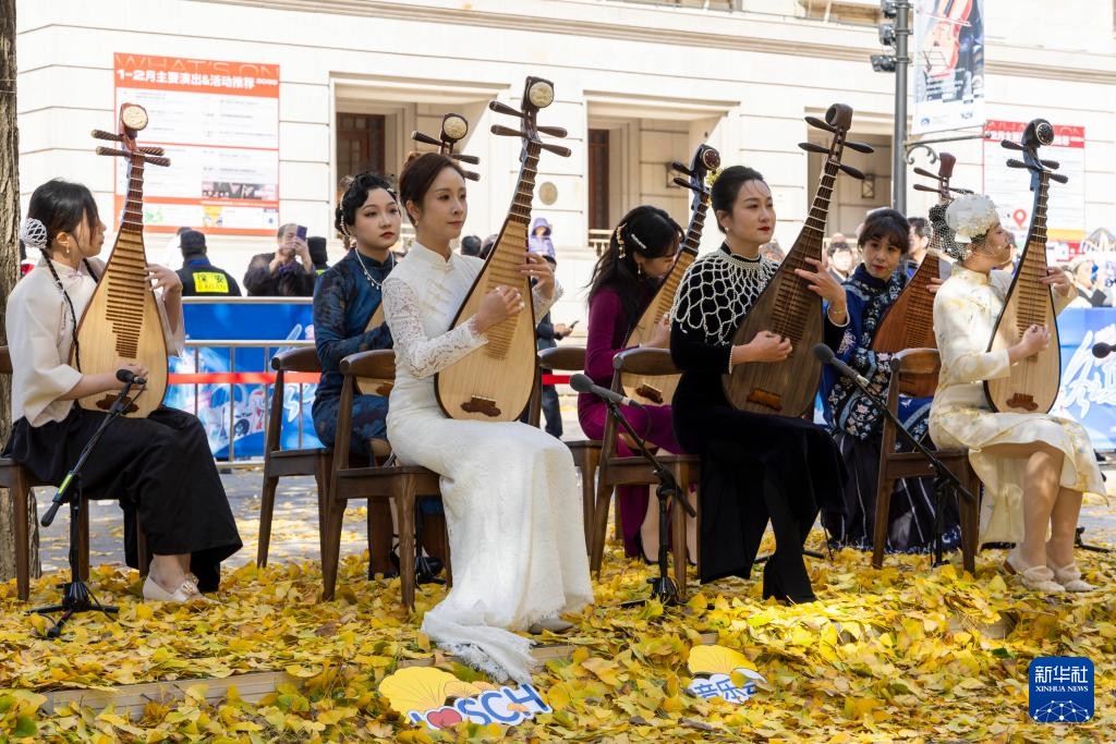 当日,一年一度的“银杏音乐会”在上海音乐厅南广场举行。在银杏树下,音乐家们倾情演绎,为市民带来沉浸式海派情境艺术盛宴。