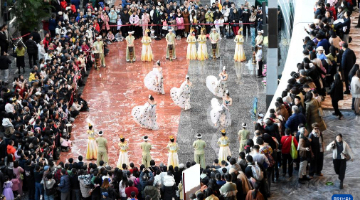 12月18日,胡晓雯(中)在西递村敬爱堂中为游客讲解。