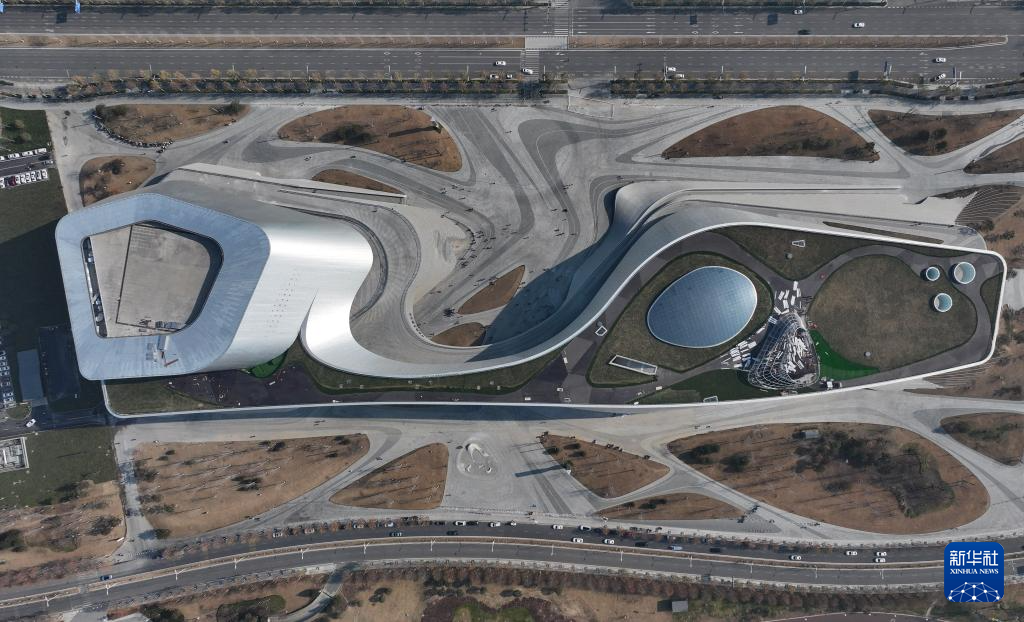 1月1日拍摄的新落成的长安云“一带一路”城市展示体验中心(无人机照片)。
