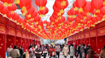 村民在大同乡阿依克日克村的小广场上参与踩气球互动游戏(1月7日摄)。