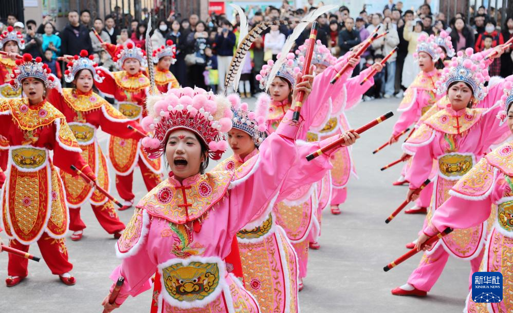 2月2日,英歌队在广东汕头潮阳区“中华英歌 舞动潮阳——2025年春节潮阳英歌嘉年华活动”中表演。