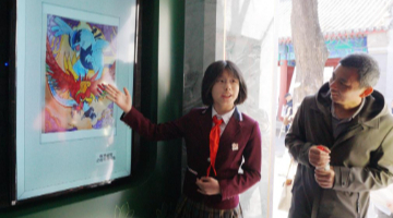 3月25日,游客在云南省丽江市丽江古城东巴文字墙前拍照。