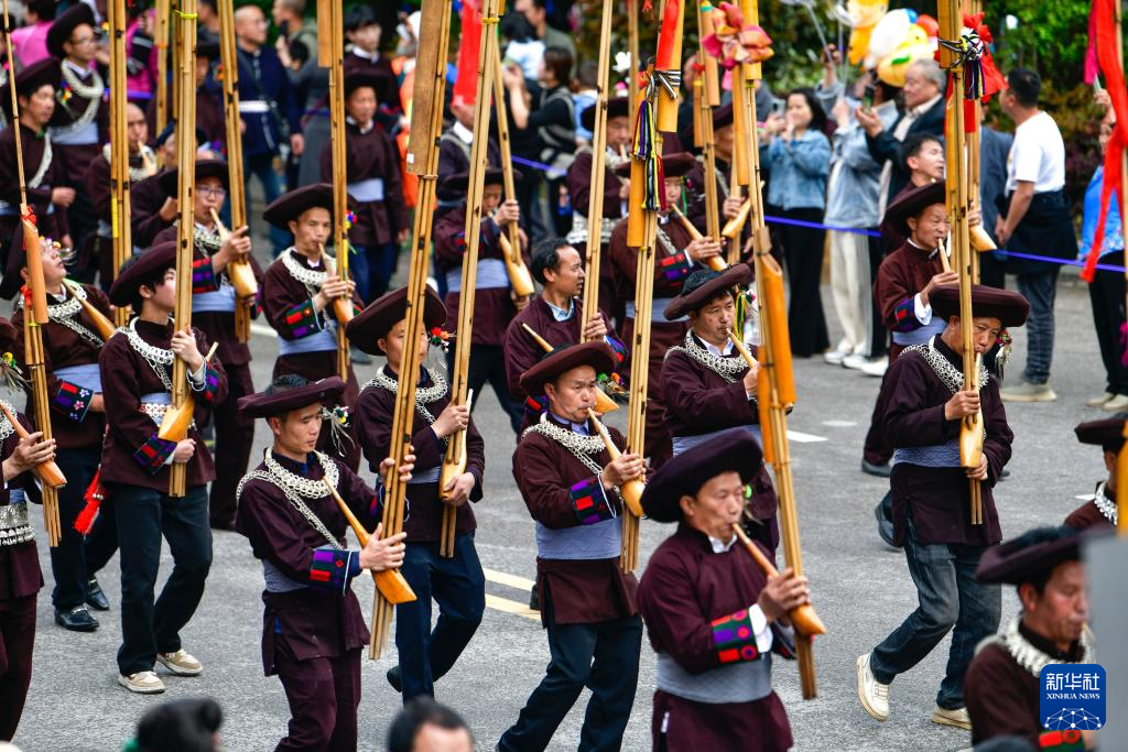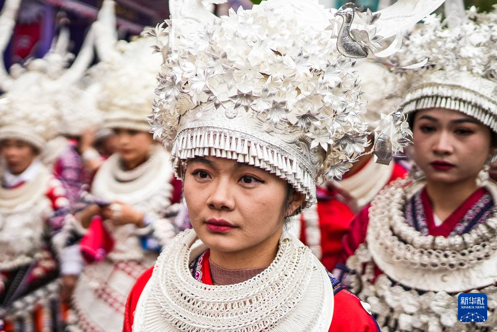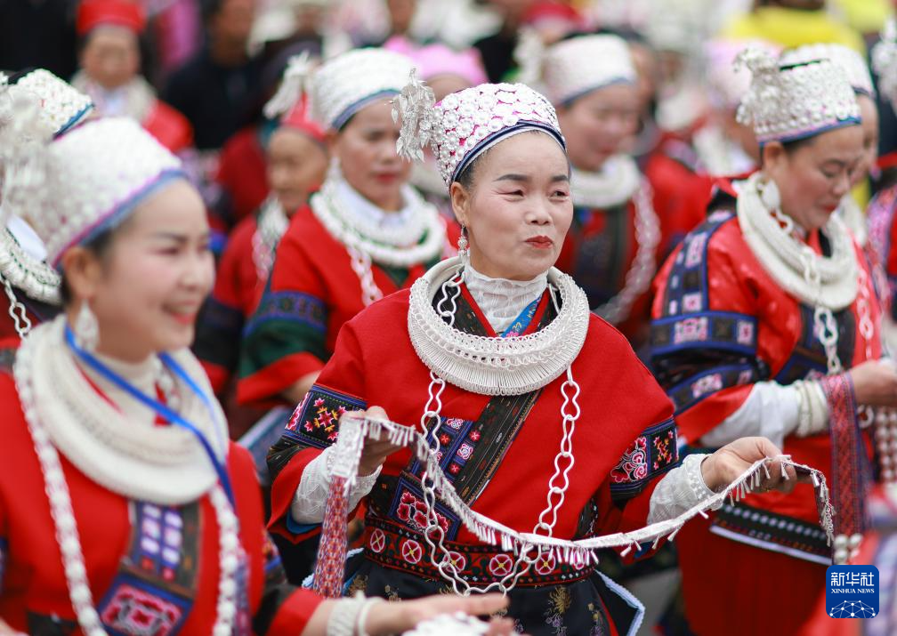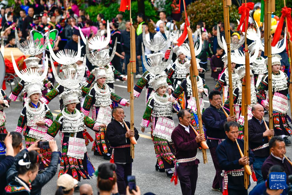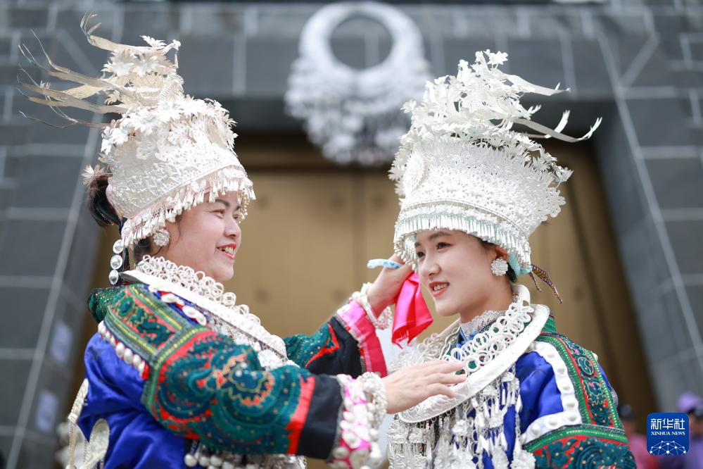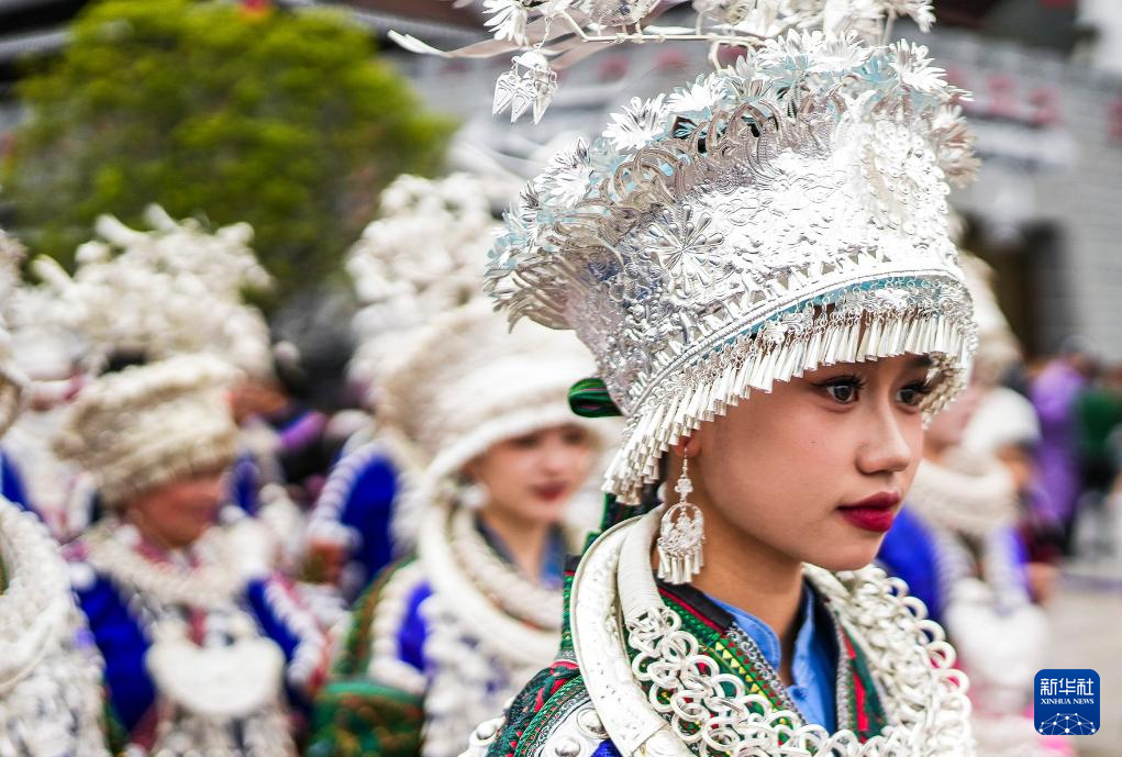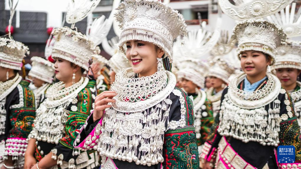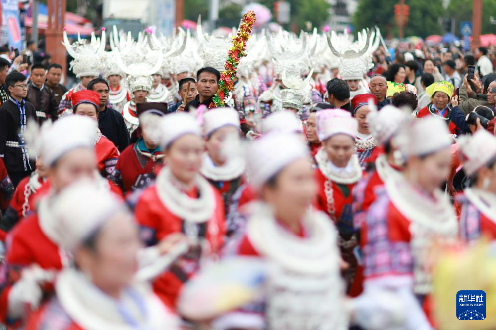 当日,在贵州省黔东南苗族侗族自治州台江县,万余名苗族群众身着盛装,庆祝一年一度的姊妹节。“苗族姊妹节”是贵州台江县苗族同胞的传统节日,2006年被列入第一批国家级非物质文化遗产名录。