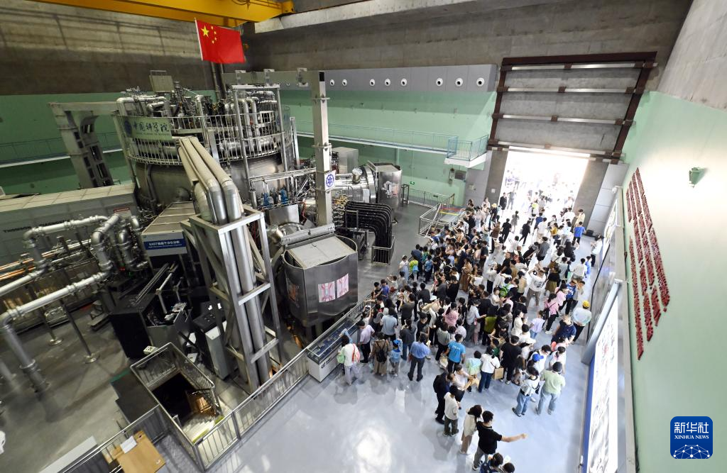 2024年5月18日,在位于安徽省合肥市的中国科学院合肥物质科学研究院等离子体物理研究所,人们参观全超导托卡马克核聚变实验装置(EAST)。新华社记者 周牧 摄