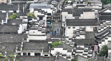 俯瞰皮央石窟群(6月24日摄,无人机照片)。