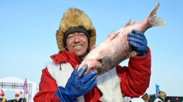1月12日,在匈牙利首都布达佩斯,中国杂技团演员在颁奖仪式上庆祝。