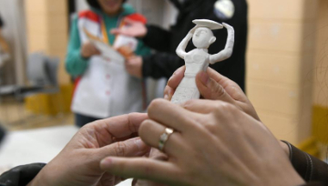1月17日,在山东省枣庄市非物质文化遗产保护中心,民间艺人阚宗勤在创作面塑作品“生肖马”。