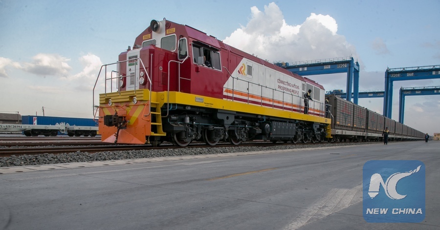 Photo taken on Jan. 1, 2018 shows a cargo train at the ultra-modern inland container depot in Nairobi, capital of Kenya. (Xinhua/Allan Mutiso)