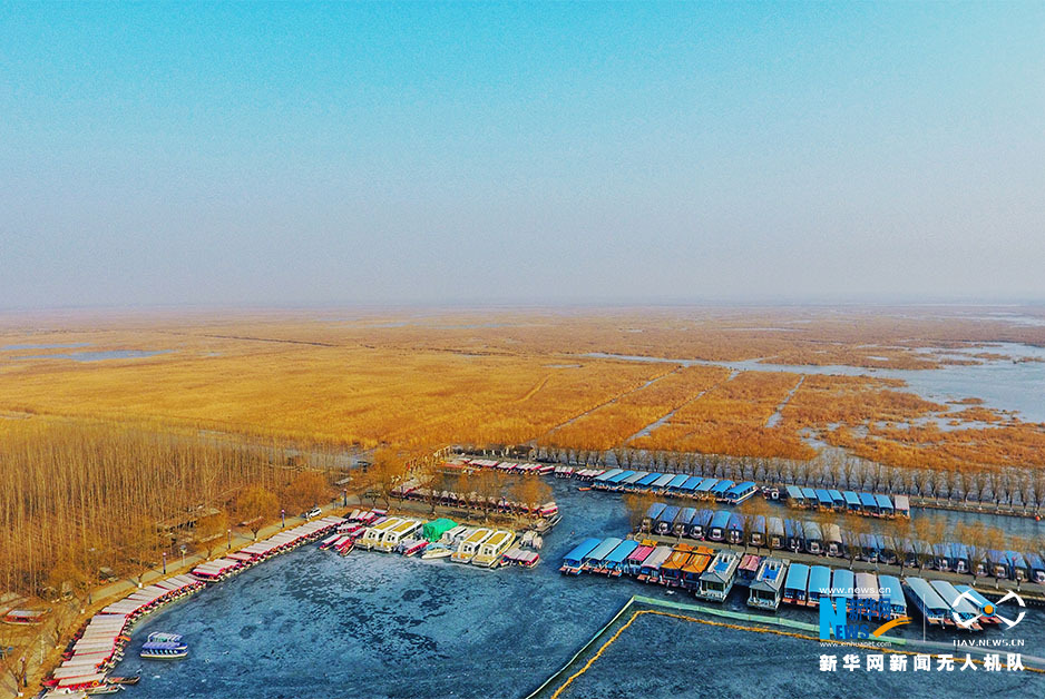 Aerial view of Baiyangdian in Xiongan New Area on New Year's Day