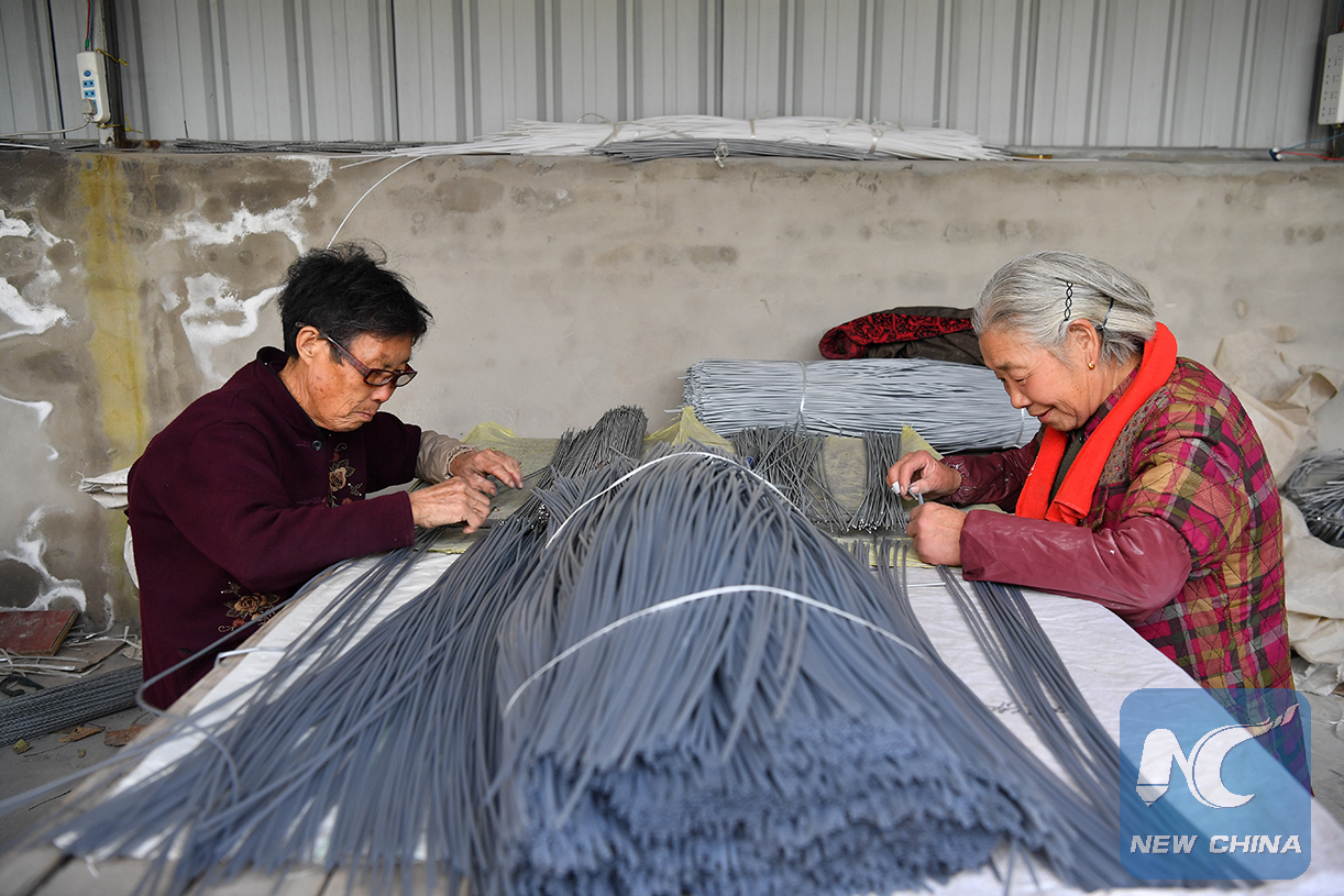 Women workers are making shopping bags in Lyu Xiaofang's factory (Li Xin/Xinhua)