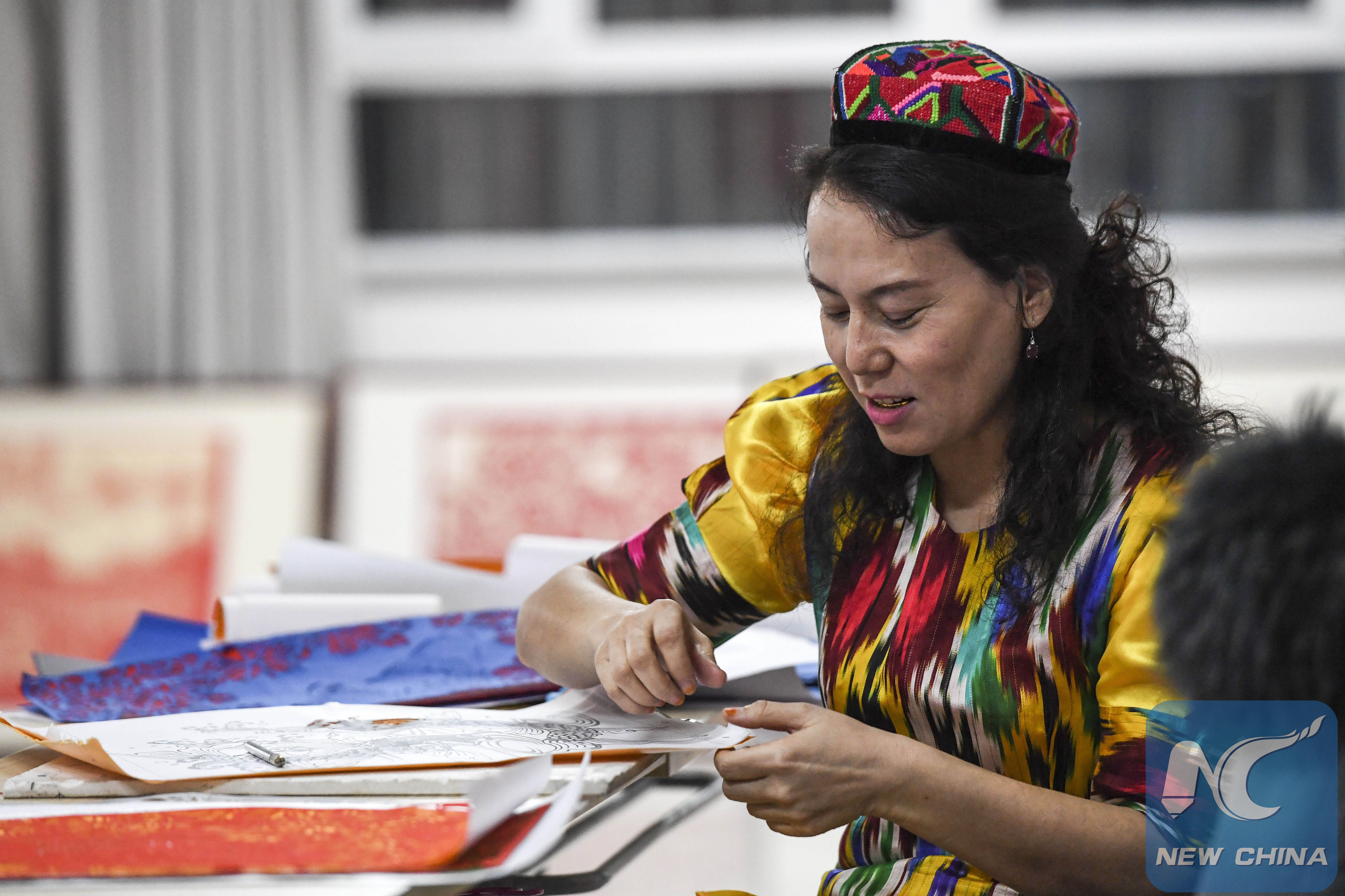 BEIJING, Jan. 10 (Xinhua) -- Paper-cutting, as its name suggests, is an art of cutting patterns into colorful paper with scissors or a knife. As a traditional folk art, paper-cutting is popular across different ethnicities in Xinjiang. Zaorigu Abdukerim, a Uyghur woman, is someone with an ardent interest.