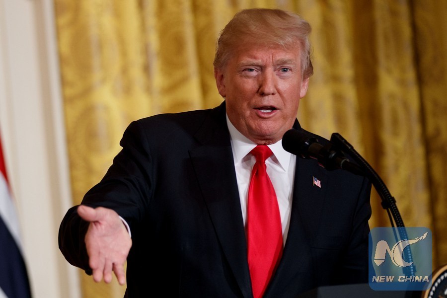 U.S. President Donald Trump speaks during a joint press conference with Norwegian Prime Minister Erna Solberg (not seen) at the White House in Washington D.C., the United States, on Jan. 10, 2018. U.S. President Donald Trump said Wednesday that Washington could "conceivably" re-enter into the global Paris climate agreement, from which he announced the withdrawal last year. (Xinhua/Ting Shen)