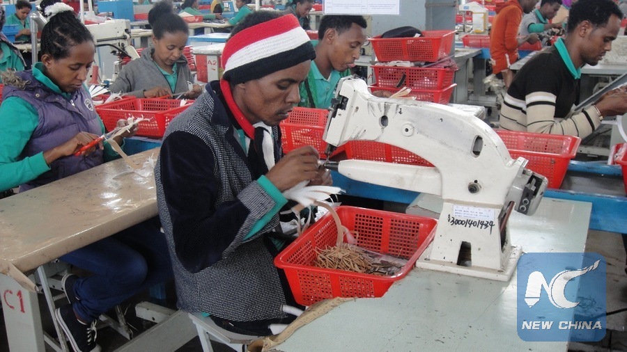 Workers go about their work at the Huajian Shoe factory about 40 kilometers south of Addis Ababa, capital of Ethiopia, Sept. 5, 2017. Huajian Industrial Holding Company Limited, a Chinese company that has a long-term investment plan in Ethiopia, is operating two plants in the country. (Xinhua/Robert Manyara)