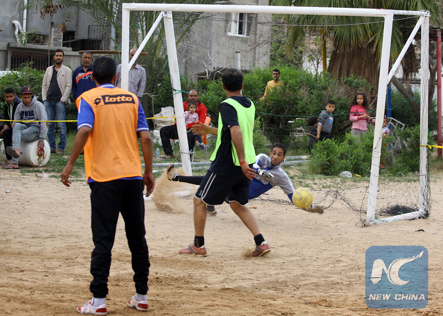 "We consider football in neighborhoods an important means of spreading a culture of peace among the people and making it a way of communication and understanding, so that the national unity can be restored after being weakened by conflicts and wars," Mahmoud Erfeda, a local young football fan, told Xinhua.