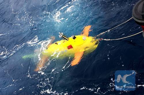 China's unmanned submersible Qianlong No. 2 ready to conduct an ocean expedition. (XINHUA/Liu Shiping)