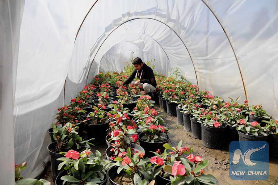In this picture taken on Feb. 18, 2018, a young Iraqi man checks flowers in a flower nursery in suburban Baghdad, Iraq, as the rise of flower sales creates more jobs amid post-IS economic recovery. (Xinhua/Khalil Dawood)