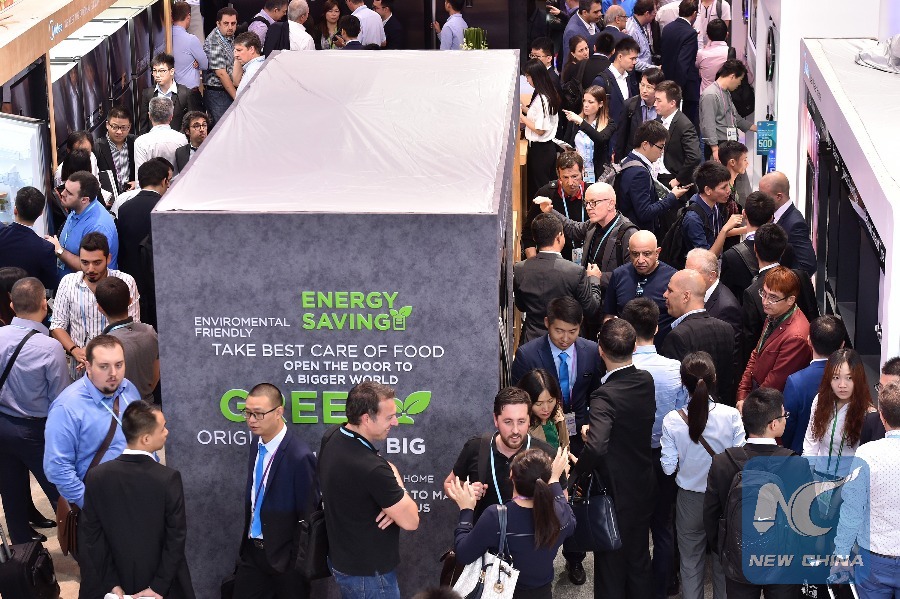 Traders attend the Canton Fair in Guangzhou, capital of south China's Guangdong Province, Oct. 15, 2017. The China Import and Export Fair is held every spring and autumn and is seen as a barometer of the country's foreign trade. (Xinhua/Liang Xu)