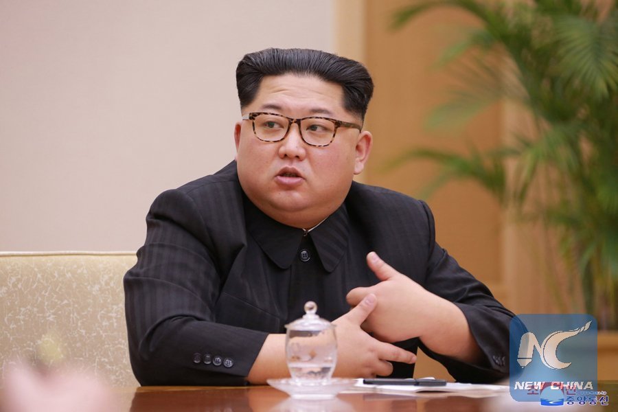 DPRK leader Kim Jong Un heads a party meeting in this photo released by the Korean Central News Agency (KCNA) in Pyongyang, April 9, 2018. (KCNA photo)