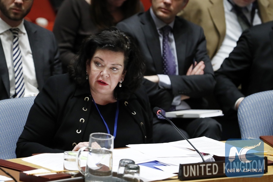 File Photo: British Ambassador to the United Nations Karen Pierce addresses a Security Council meeting on the poisoning of former Russian double agent Sergei Skripal and his daughter Yulia Skripal, at the UN headquarters in New York, April 5, 2018.(Xinhua/Li Muzi)