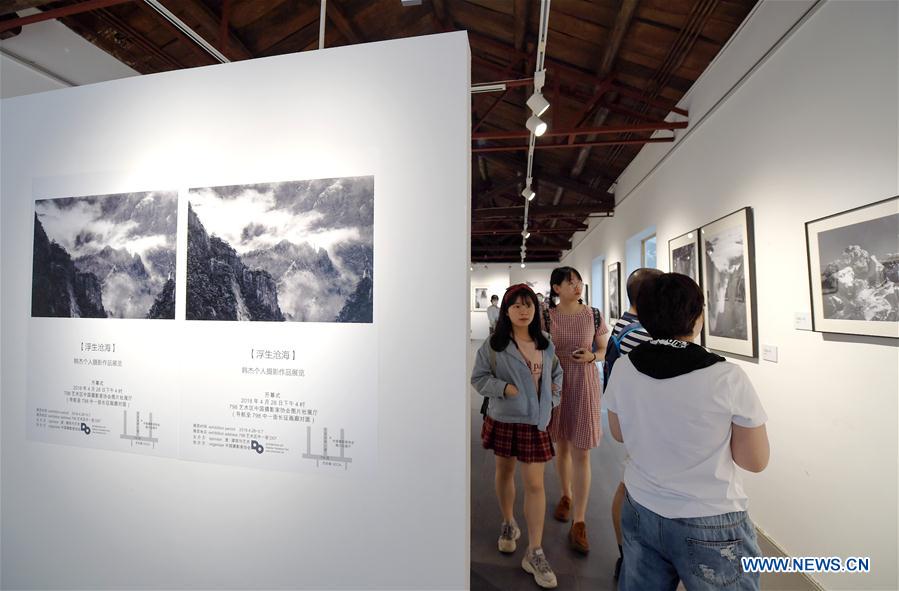 Tourists visit a photography exhibition at 798 ArtDist site in Beijing, capital of China, April 29, 2018. People in China spend their Labor Day holiday in various ways. (Xinhua/Dai Tianfang)