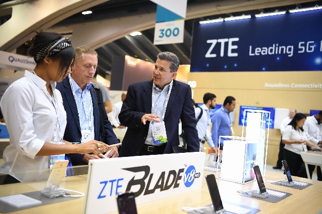 People visit the booth of Chinese telecommunication firm ZTE Corporation during the 2017 Mobile World Congress Americas (MWCA) in San Francisco, the United States, Sept. 12, 2017. (Xinhua/Wu Xiaoling)