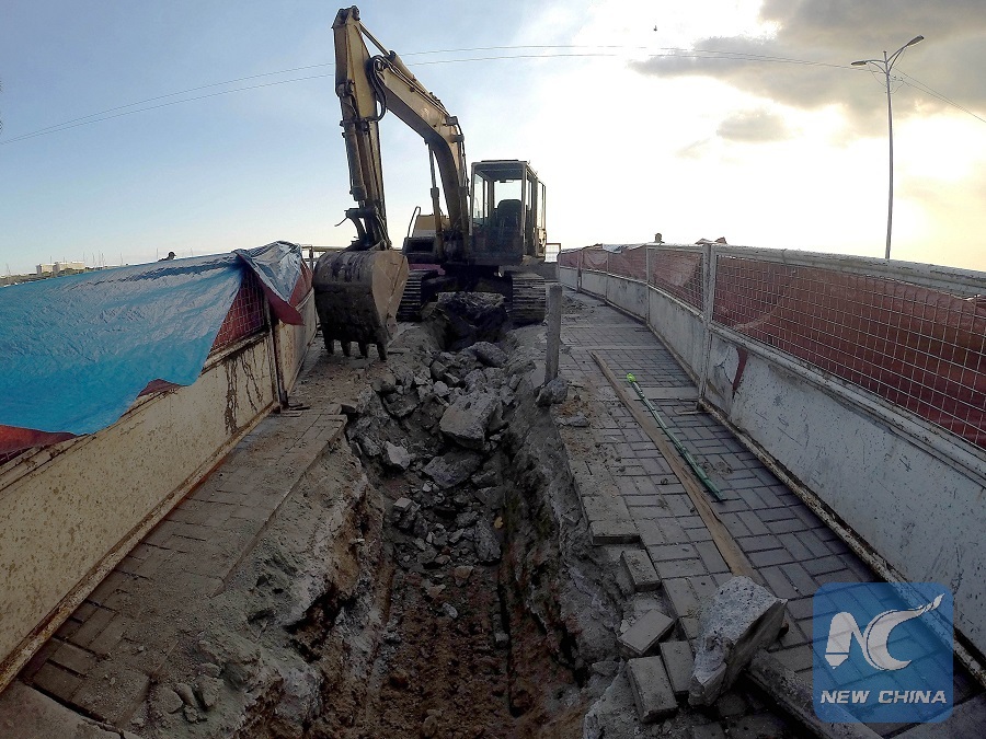 A backhoe is seen at the area where a statue remarking the World War II comfort women used to be in Manila, the Philippines, April 28, 2018. (Xinhua/Rouelle Umali)