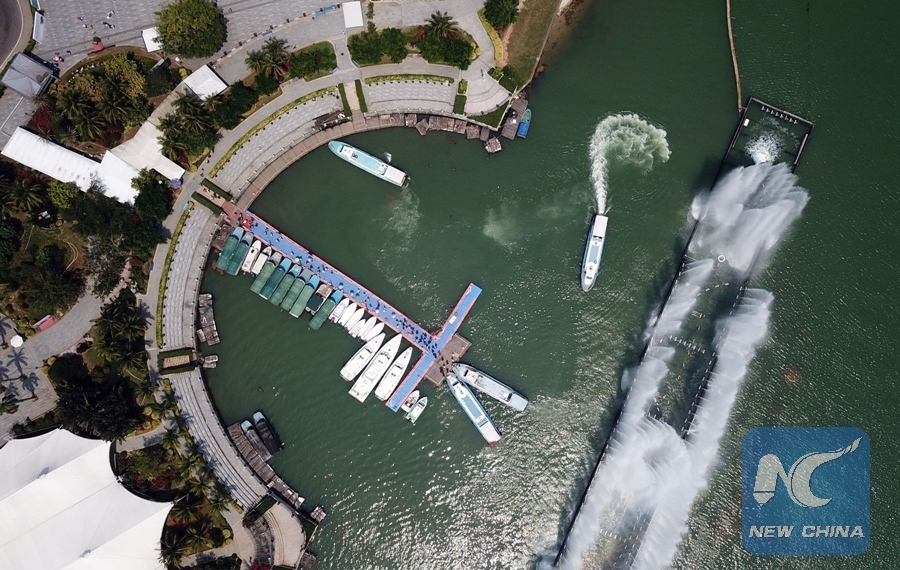 File Photo: Aerial photo taken on March 23, 2018 shows a dock near the founding site of Boao Forum for Asia (BFA) in south China's Hainan Province. The BFA annual conference will take place in Hainan in April, and focus on reform and opening-up. (Xinhua/Jin Liangkuai)