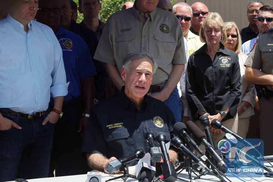 Ten people were killed and another 10 wounded when a shooter opened fire inside Santa Fe High School in the southeast of Houston, in the U.S. state of Texas, Friday morning, Texas Governor Greg Abbott confirmed in a press conference. (Xinhua/Steven Song)