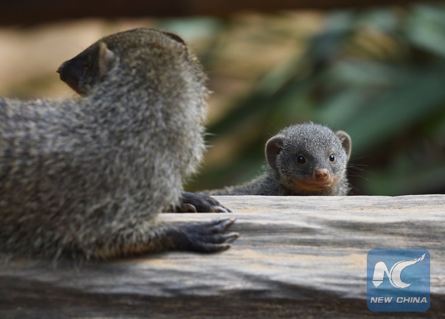 A picture taken on Aug. 17, 2017 shows a banded mongoose cub at the zoological park of the eastern French city of Amneville, eastern France. (Xinhua/AFP)