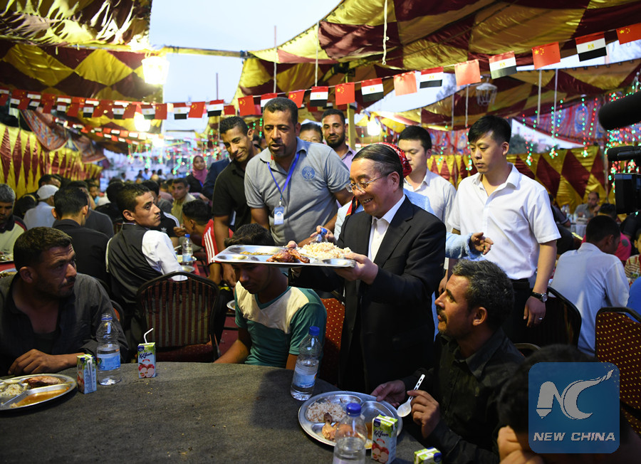 CAIRO, May 28 (Xinhua) -- Dozens of Chinese companies on Sunday sent hundreds of food boxes to the needy people and held a charity iftar table in Cairo's Maadi district, sharing the joy of Egyptians during the holy month of Ramadan.